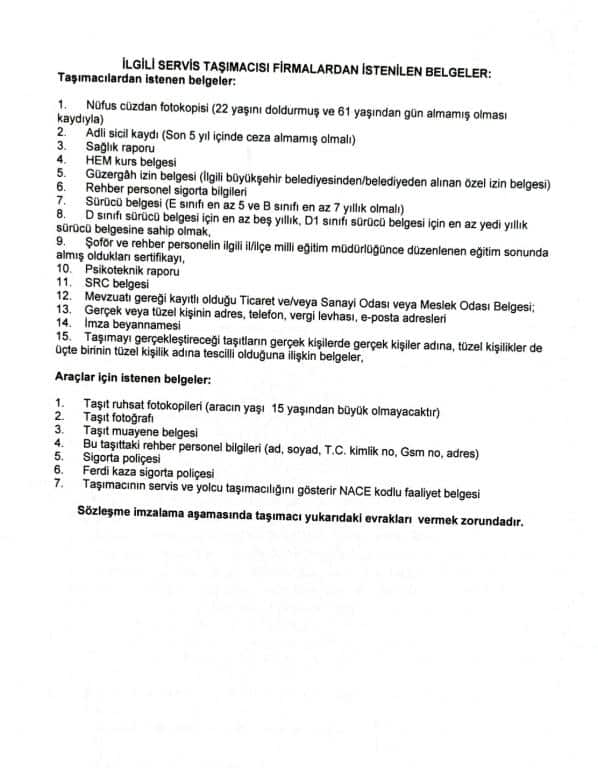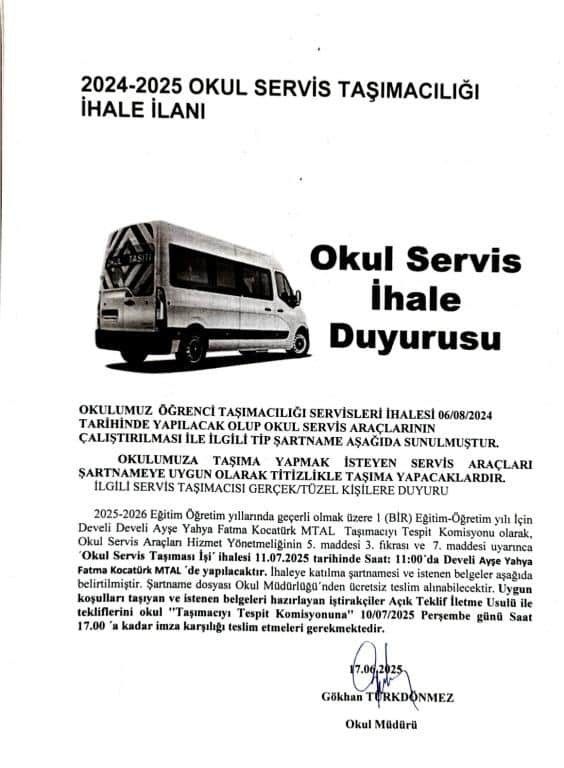 AYF KOCATÜRK MTAL Şehir İçi Ögrenci Taşıma İhalesi Duyurusu