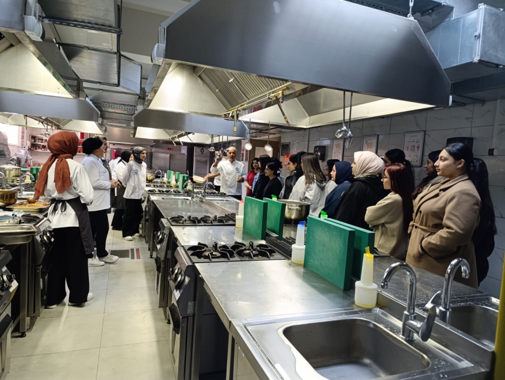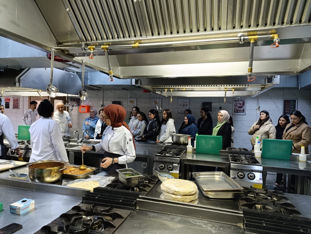 Aşçılık bölümünün mutfak kısmı gezilerek ve oradaki hocalar ve öğrencilerden yüksekokul ve bölüm hakkında bilgiler edinildi ve okula dönüş sağlandı.